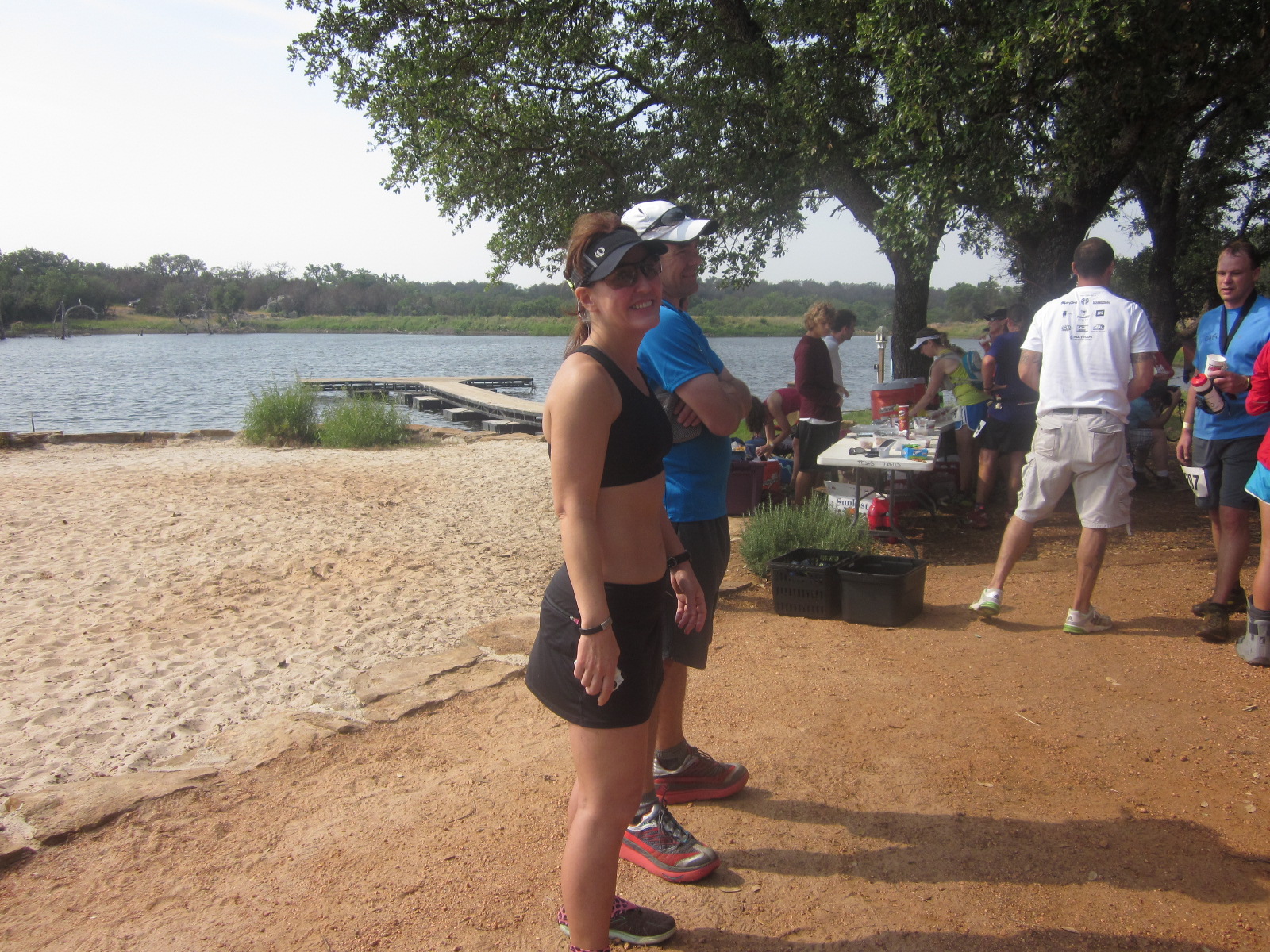 I had been passing the tail end of marathoners who were doing two loops and started 15 minutes ahead of half-marathon runners, and also some half-folks who went out fast. The weather was, well, Texas summer, 70's at the start and 90% humidity with temps rising, but on some of the granite open spaces there was a breeze, and it felt nice (and I would open my arms and yell out nonsense). Since I had no clue how to tell apart "my" race runners from the other, I would just cheer on and get around. At some point there was a gal who didn't like being passed and she got me back, and I believe that what had sparked my competitive juices. Really? Unless a disaster comes, once I go, I go, honey! So, I slowly picked it up.